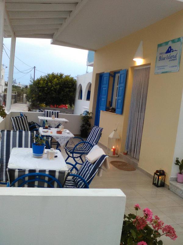Το Blue Island Studios & Apartments, είναι ένα οικογενειακό ξενοδοχείο, που βρίσκεται σε μία από τις πιο προνομιακές τοποθεσίες στο κέντρο της Περίσσας. Η πρόσβαση στην πιο ξακουστή παραλία του νησιού, την παραλία της Περίσσας, είναι μόνο 100μ. με τα πόδια, από το ξενοδοχείο μας. Σε απόσταση 5 λεπτών με τα πόδια, θα βρείτε, ταβέρνες, εστιατόρια, τουριστικά γραφεία-πρακτορεία, super markets, fast foods, αγορά μεγάλη, καφετέριες, κλάμπς κ.α. Οι υπηρεσίες που προσφέρει το κατάλυμα μας είναι οι εξής: διάφορα δωμάτια σε ποικίλες τιμές με δικό τους, ιδιωτικό μπάνιο,ψυγείο,τηλεόραση και ιδιωτικό μπαλκόνι και πρωινό με μόνο 7,00 ευρώ ανά άτομο ημερησίως. Έξτρα υπηρεσίες, όπως: διοργάνωση εκδρομών,ξεναγήσεων,ενοικιάσεις αυτοκινήτων,μοτοποδηλάτων,φύλαξη νηπίων με την συγκατάθεση του γονέα,μεταφορά από και προς το λιμάνι και το αεροδρόμιο είναι με εξτρά χρέωση, σε συνεργασία με τα ειδικά πρακτορεία μας. Ακόμη, η γειτονία μας αποτελείται από διάφορα άλλα ξενοδοχεία και δωμάτια ενοικιαζόμενα.Έχει κίνηση, δεν είναι απομονωμένη περιοχή, αλλά έχει και την ησυχία που απαιτείται για την ξεκούραση σας.